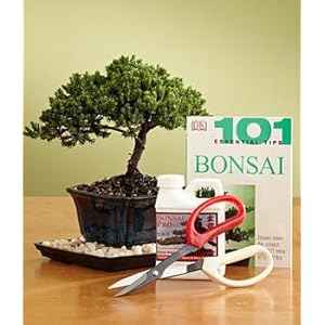 Indoor JuniperBonsai Kit by Sheryls Shop, comes with everything else you need, beginner Shears, Five year Old Juniper Bonsai Tree, 101 Bonsai Book, Soil, Wire and 6" Ceramic Chinese Pot, Deco Pebbles included!